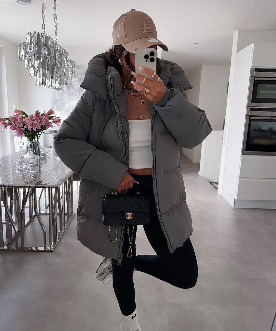 Superleuke oversized jas. De capuchon is afneembaar. Houdt je bijzonder warm en is daarom perfect voor koudere dagen. Het model is 1,69 m lang en draagt maat S.